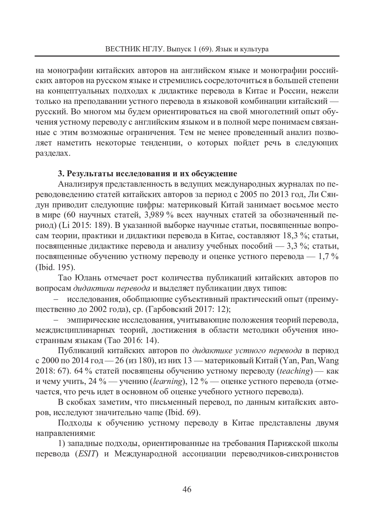 3. Волкова Т. А. Дидактика перевода: российский и китайский опыт // Россия - Китай: история и культура: Сборник статей и докладов участников XI Международной научно-практической конференции. Казань: Издательство Академии наук РТ, 2018. С. 90-97. [Volkova, Tatiana A. (2018) Didaktika perevoda: rossiiskii i kitaiskii opyt (Russian and Chinese Perspectives on Translator and Interpreter Training). In Rossiya - Kitai: istoriya i kul’tura: Sbornik statei i dokladov uchastnikov XI Mezhdunarodnoi nauchno-prakticheskoi konferentsii (Russia - China: History and Culture: Eleventh International Conference Proceedings). Kazan: Academy of Sciences of Tatarstan, 90-97. (In Russian)]. EDN: ZBDHKP