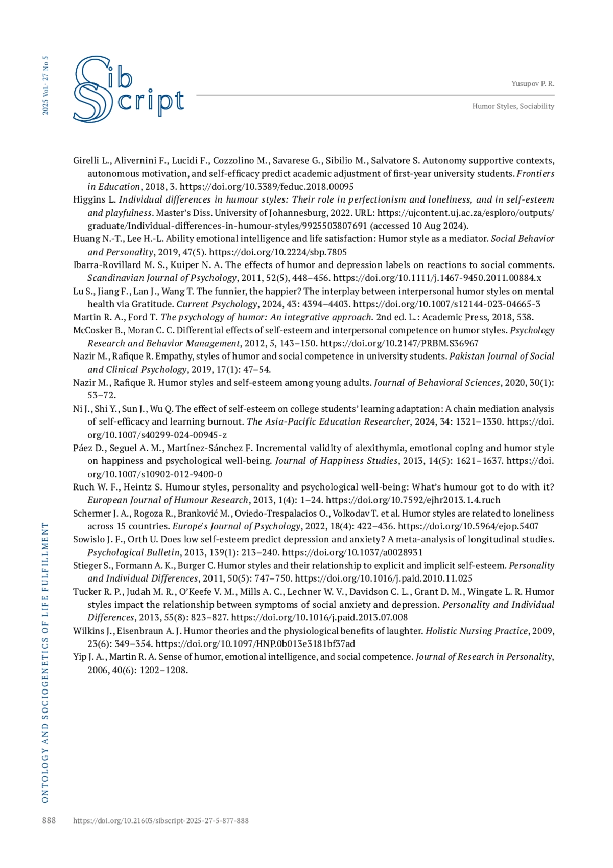 19. Higgins L. Individual differences in humour styles: Their role in perfectionism and loneliness, and in self-esteem and playfulness. Master’s Diss. University of Johannesburg, 2022. URL: https://ujcontent.uj.ac.za/esploro/outputs/graduate/Individual-differences-in-humour-styles/9925503807691 (accessed 10 Aug 2024).