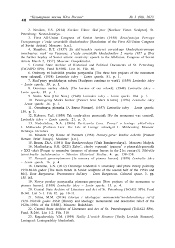 1. Доронина Л.Н. Скульптура сталинской эпохи (1930-1950-е годы): монография. М.: МГПУ, 2013. 97 с. EDN: UGMJUH