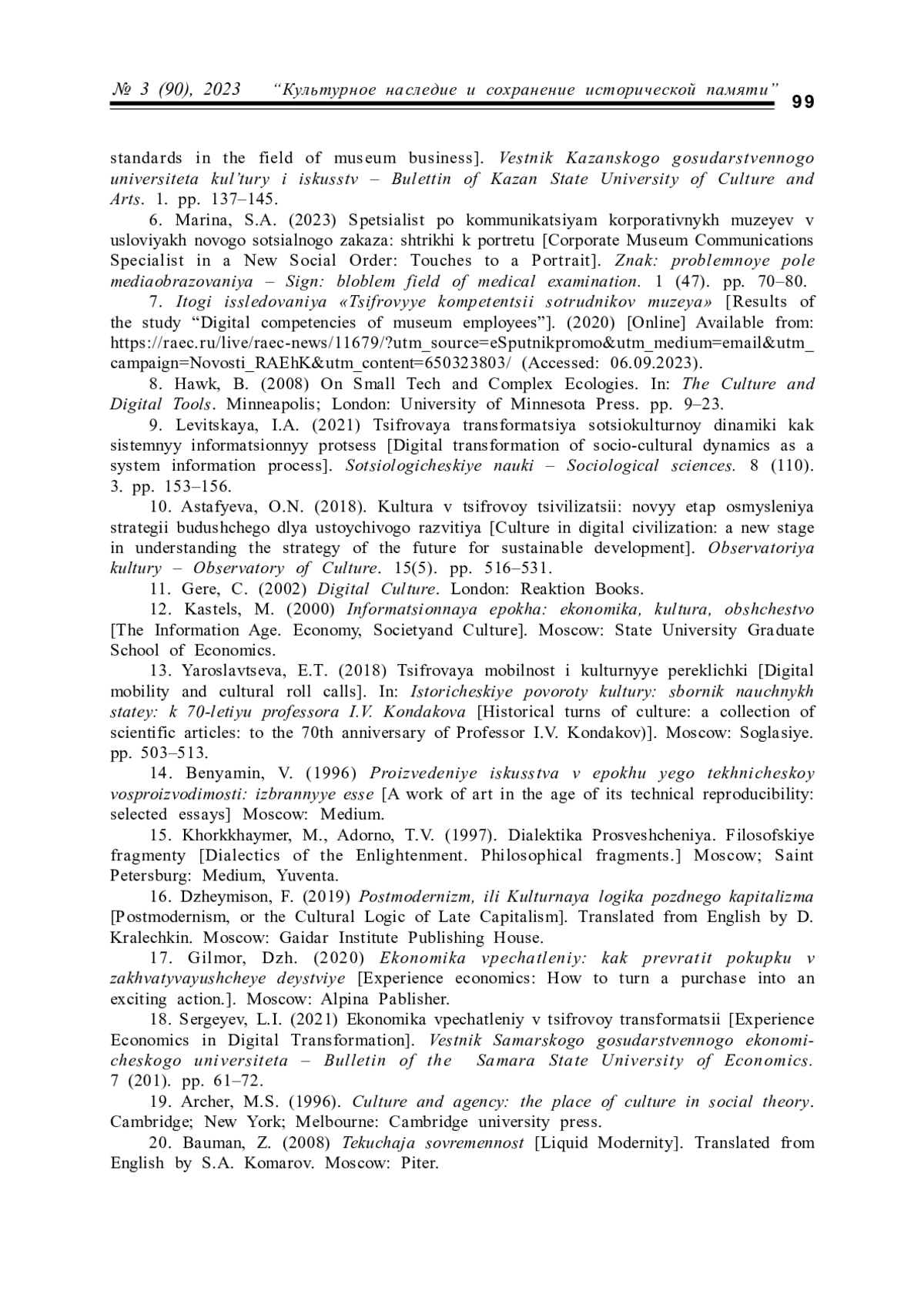 7. Итоги исследования “Цифровые компетенции сотрудников музея”. URL: https://raec.ru/live/raec-news/11679/?utm_source=eSputnikpromo& utm_medium=email& utm_campaign=Novosti_RAEhK&utm_content=650323803/(дата обращения: 06.09.2023).