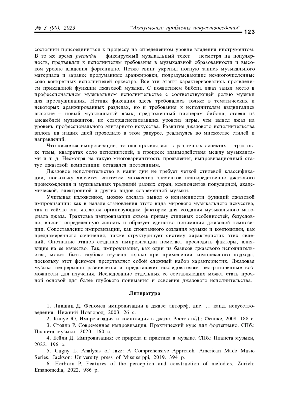 1. Лившиц Д. Феномен импровизации в джазе: автореф. дис. … канд. искусствоведения. Нижний Новгород, 2003. 26 с.