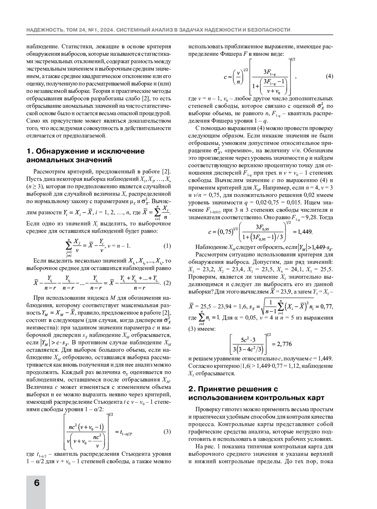 СИДНЯЕВ Н. И., БАТТУЛГА Э. МЕТОДОЛОГИЯ ОБНАРУЖЕНИЯ И УДАЛЕНИЯ АНОМАЛЬНЫХ ЗНАЧЕНИЙ В СТАТИСТИЧЕСКИХ ИССЛЕДОВАНИЯХ // НАДЕЖНОСТЬ. 2024. № 1, ТОМ 24