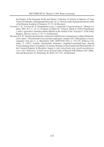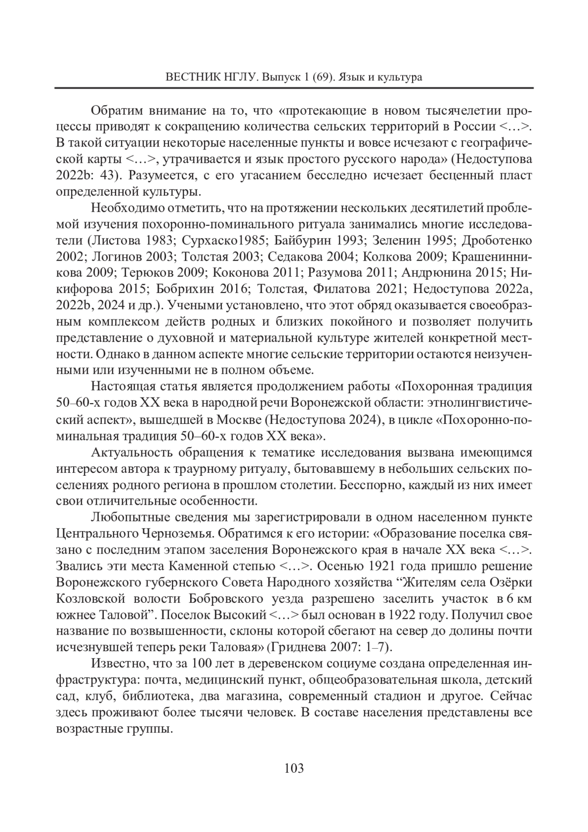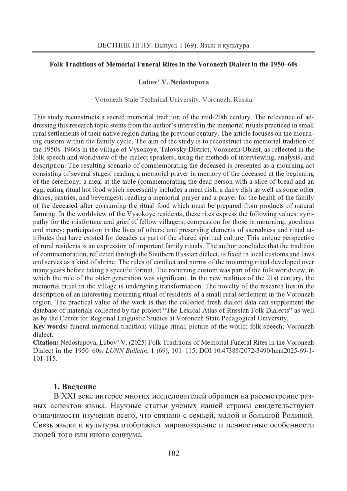 НЕДОСТУПОВА Л. В. НАРОДНАЯ ПОМИНАЛЬНАЯ ТРАДИЦИЯ 50-60-Х ГОДОВ XX ВЕКА В ВОРОНЕЖСКОМ ГОВОРЕ // ВЕСТНИК НИЖЕГОРОДСКОГО ГОСУДАРСТВЕННОГО ЛИНГВИСТИЧЕСКОГО УНИВЕРСИТЕТА ИМ. Н. А. ДОБРОЛЮБОВА. 2025. № 1 (69)
