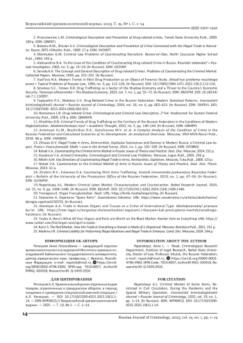 19. Репецкая А.Л. Современный криминальный рынок рабочей силы: характеристика и противодействие / А.Л. Репецкая. 10.17150/2411-6262.2024.15(4).1438-1446. // Байкальский научный журнал. - 2024. - Т. 15, № 4. - С. 1438-1446. DOI: 10.17150/2411-6262.2024.15(4).1438-1446.BaikalResearchJournal.-2024.- EDN: IQUAVE