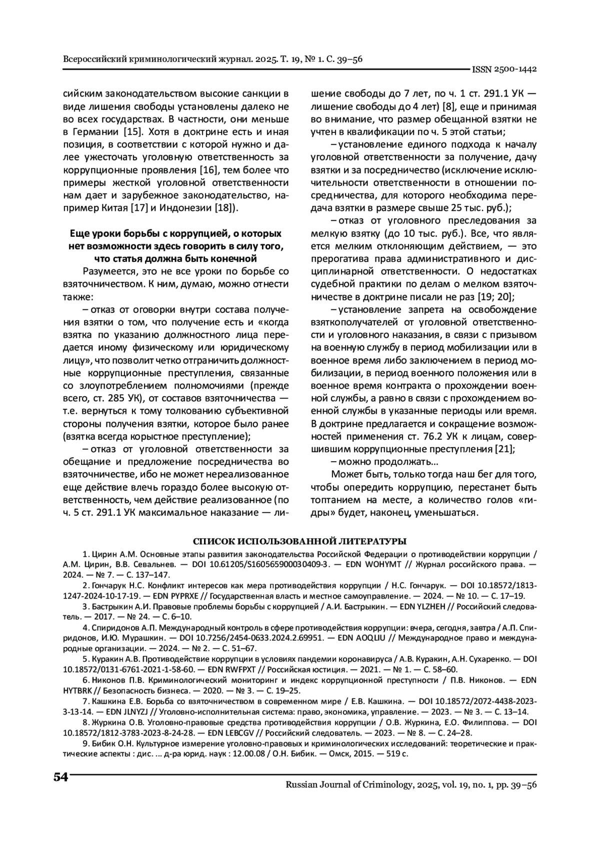 6. Никонов П.В. Криминологический мониторинг и индекс коррупционной преступности / П.В. Никонов. // Безопасность бизнеса. - 2020. - № 3. - С. 19-25. EDN: HYTBRK