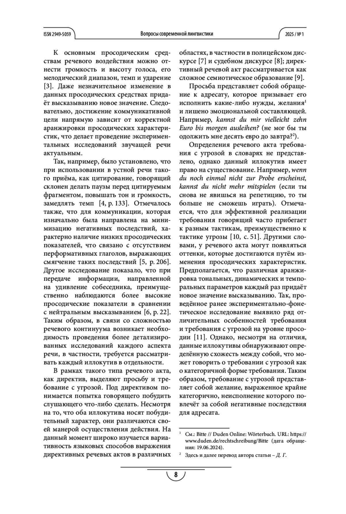 4. Bermúdez F. Using prosody to express evidentiality. The case of the quotative // Journal of Pragmatics. 2023. Vol. 214. P. 127-143. DOI: 10.1016/j.pragma.2023.06.009