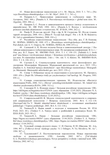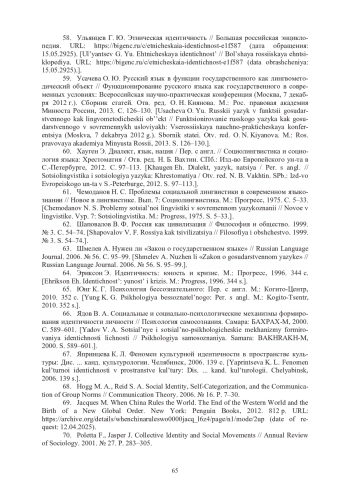 58. Ульянцев Г. Ю. Этническая идентичность // Большая российская энциклопедия. URL: https://bigenc.ru/c/etnicheskaia-identichnost-e1f587 (дата обращения: 15.05.2925).