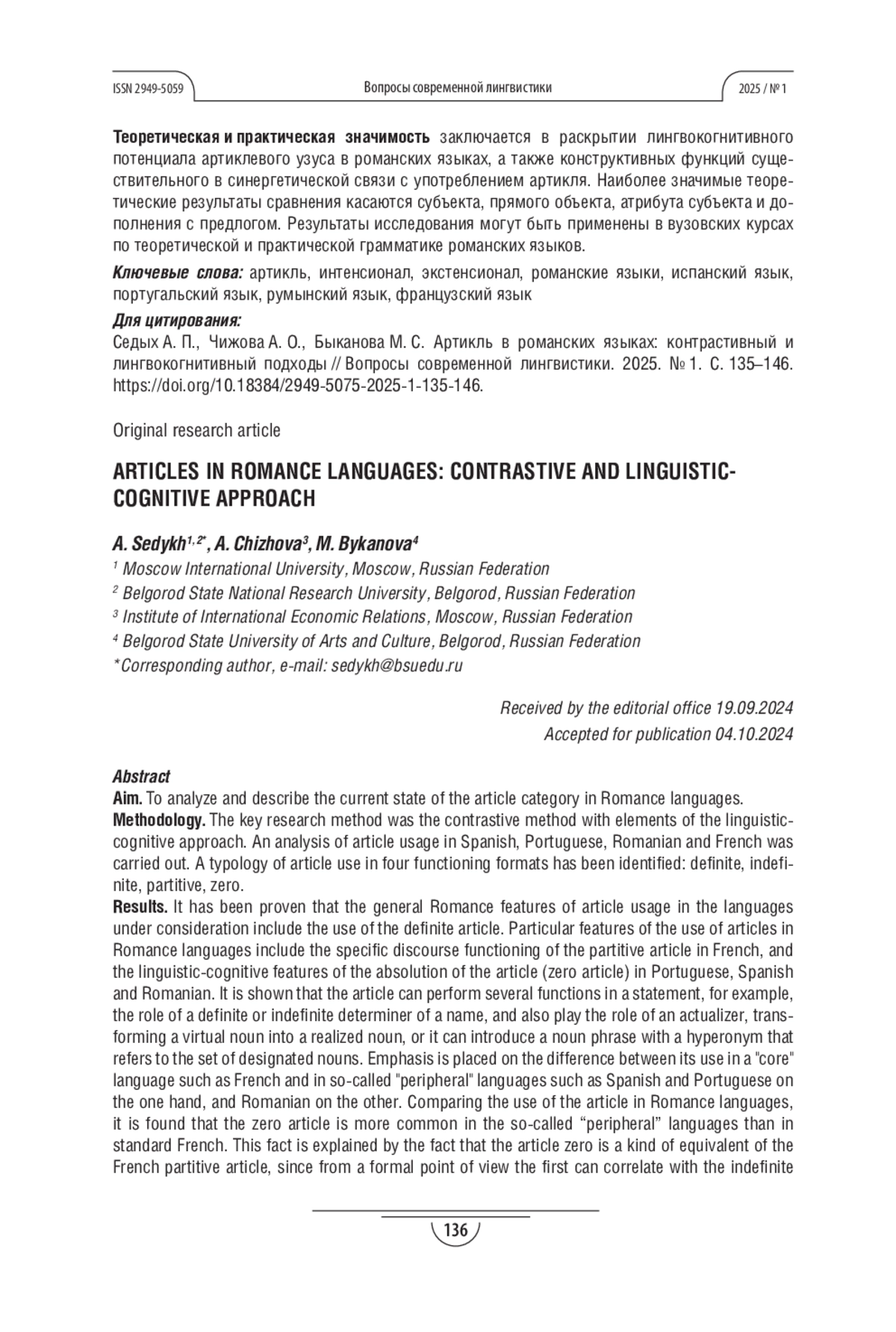Теоретическая и/или практическая значимость. Практическая ценность проведённого исследования связана с потенциальными возможностями использования собранного теоретического и языкового материала в профессиональной деятельности переводчика, лексикографа, терминоведа, лексиколога, учителя иностранных языков.