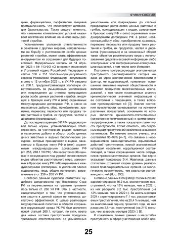 Проблема незаконной добычи особо ценных растений и грибов, относящихся к видам, занесенным в Красную книгу РФ и (или) охраняемым международными договорами РФ, сегодня остается достаточно острой. В последние годы наблюдается рост масштабов их незаконного сбора, что связано с увеличением спроса на редкие и находящиеся под угрозой исчезновения виды. По нашему мнению, их сохранение – ключевой момент в обеспечении экологического баланса и биологического разнообразия