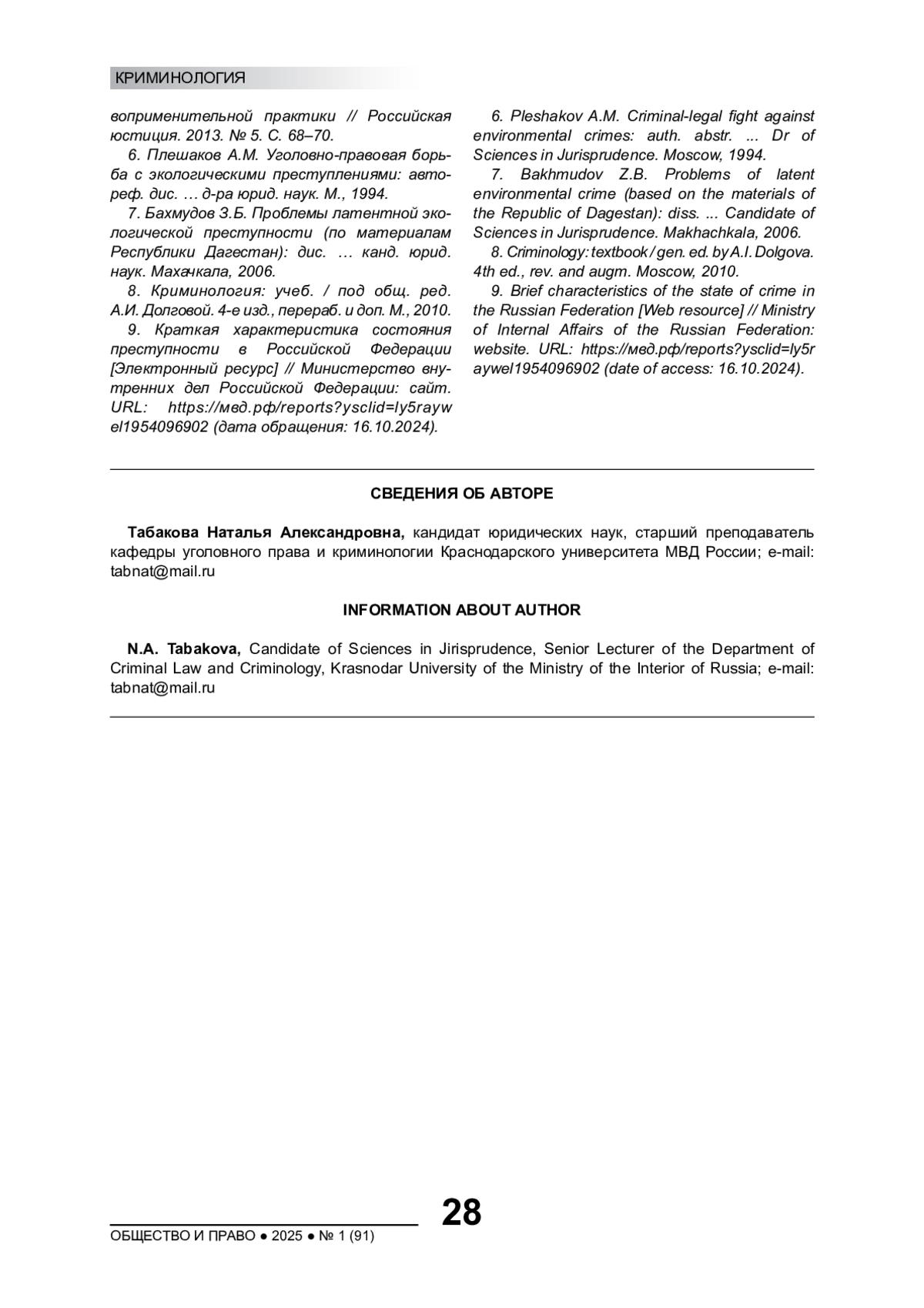 7. Бахмудов З.Б. Проблемы латентной экологической преступности (по материалам Республики Дагестан): дис. … канд. юрид. наук. Махачкала, 2006. EDN: NOAGVP