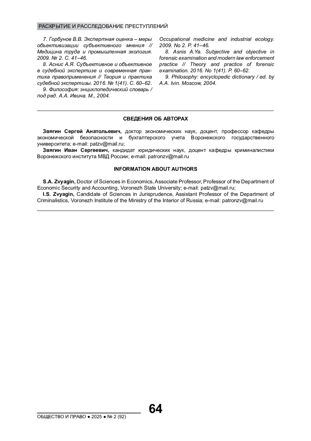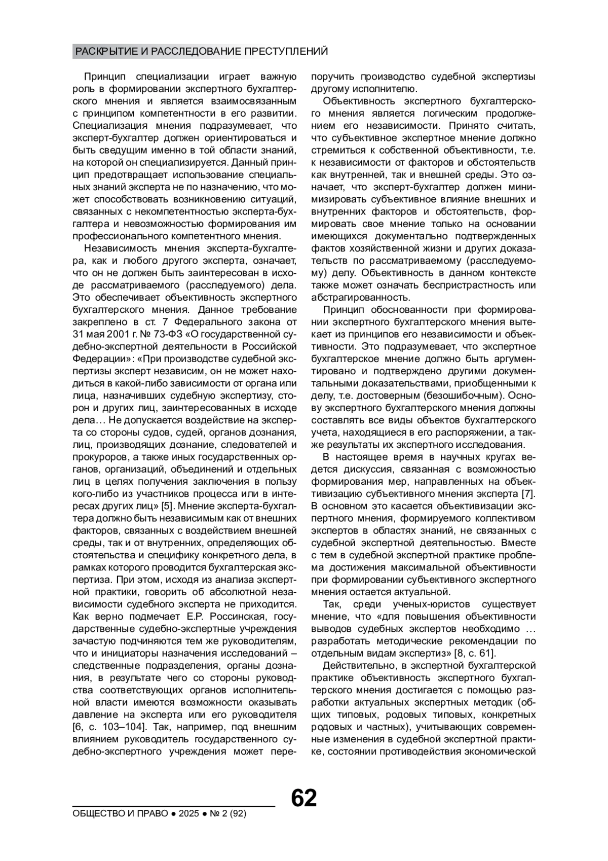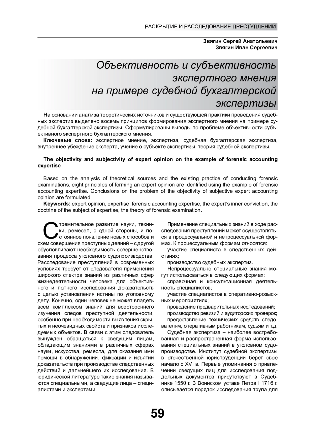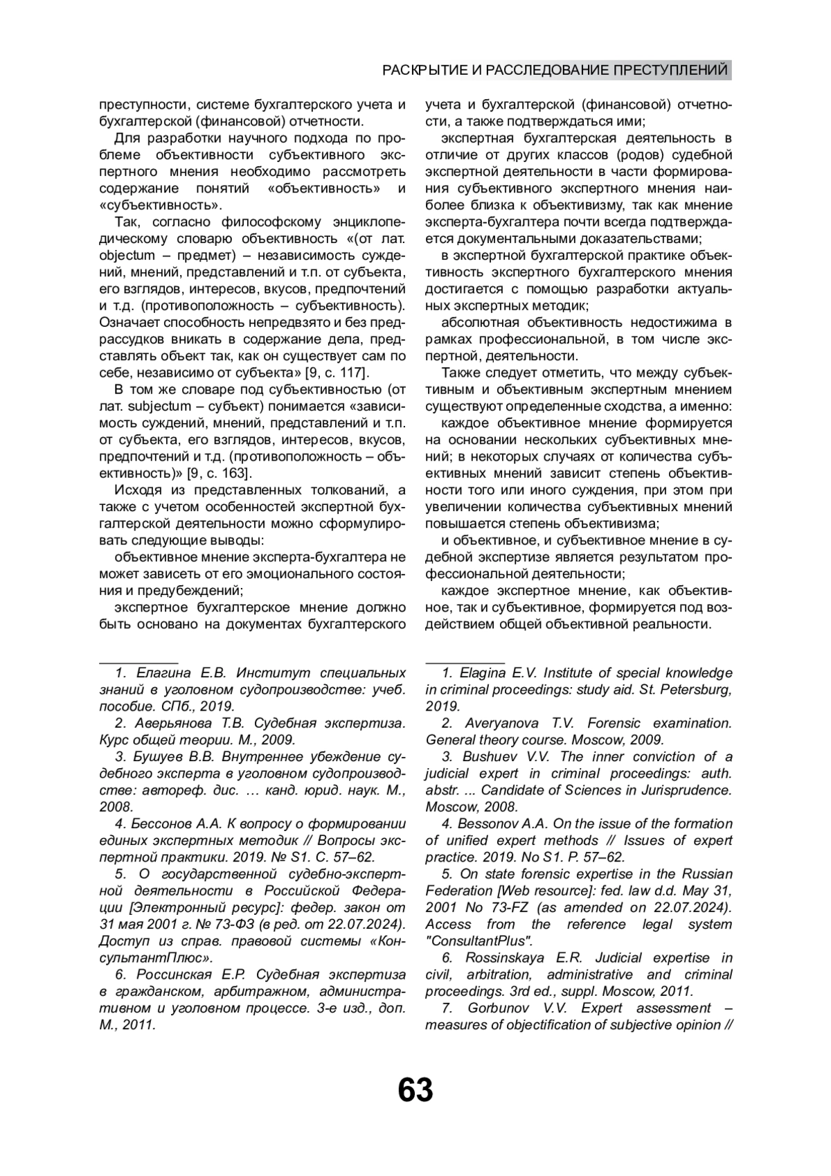 8. Аснис А.Я. Субъективное и объективное в судебной экспертизе и современная практика правоприменения // Теория и практика судебной экспертизы. 2016. № 1(41). С. 60-62. EDN: VROIQN