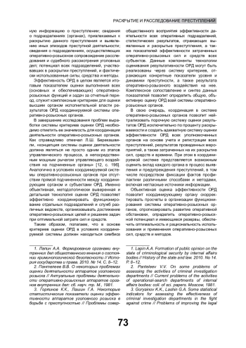 3. Горяинов К.К., Лашин Г.А. Некоторые статистические показатели оценки эффективности аппаратов уголовного розыска в борьбе с преступностью // Проблемы совершенствования правового регулирования оперативно-розыскной деятельности в современных условиях: сб. науч. тр. М., 1991.