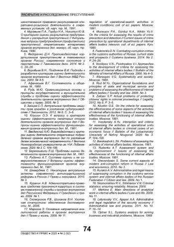 25. Мещеряков А.Н., Тарсуков К.М., Филиппов А.Н. Совершенствование критериев оценки деятельности аппаратов уголовного розыска по оперативному обслуживанию территории (объектов) // Проблемы теории и практики в оперативно-розыскной деятельности в современных условиях: межвуз. сб. науч. тр. М., 1993.