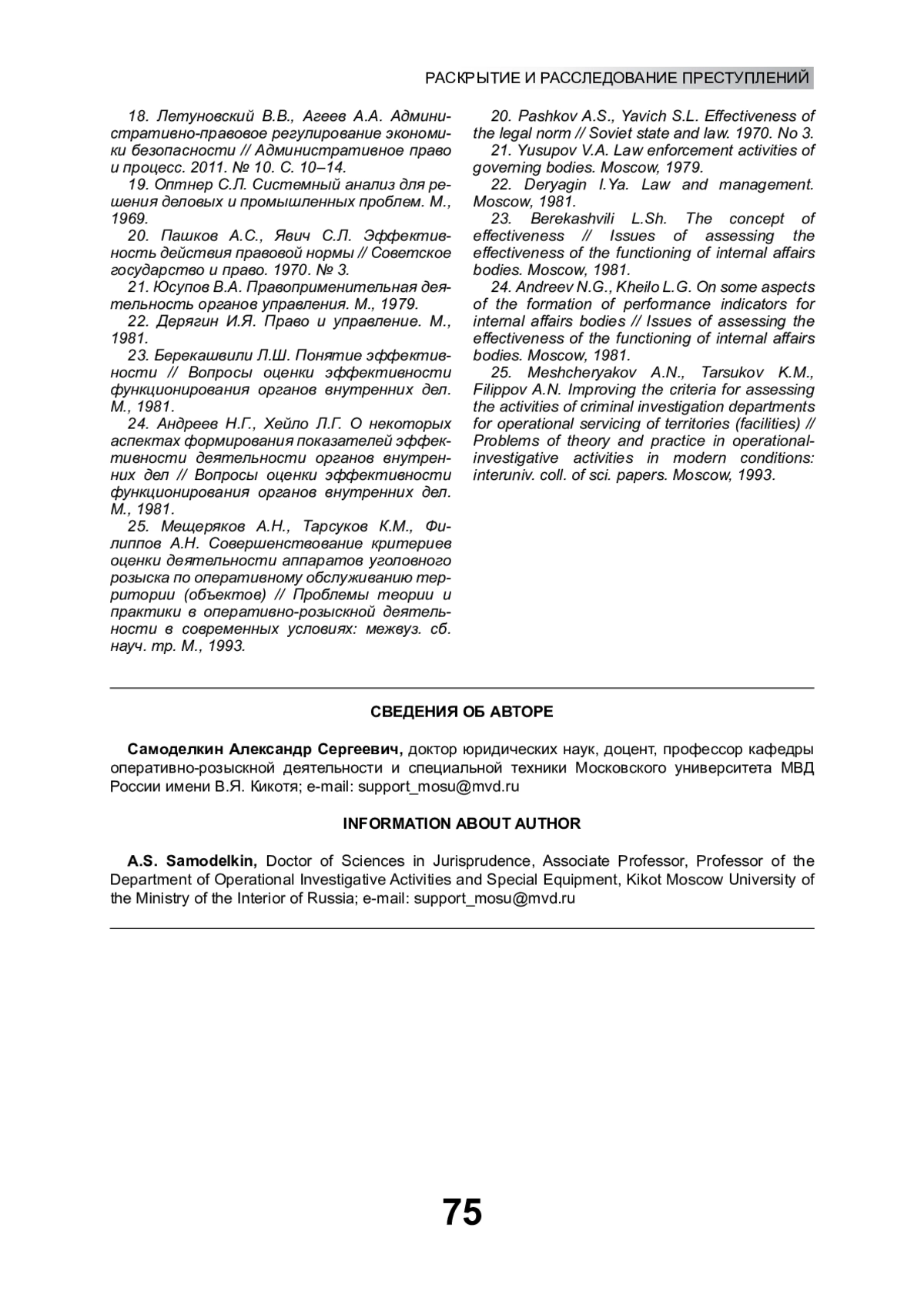 24. Андреев Н.Г., Хейло Л.Г. О некоторых аспектах формирования показателей эффективности деятельности органов внутренних дел // Вопросы оценки эффективности функционирования органов внутренних дел. М., 1981.