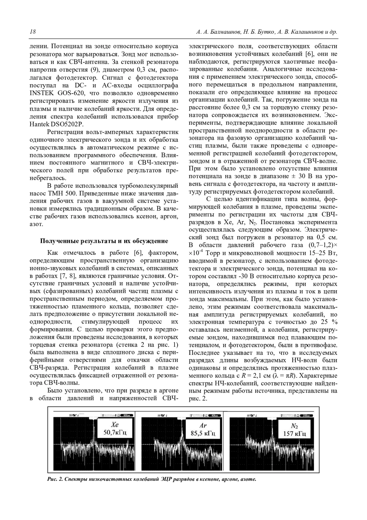 Балмашнов А. А., Бутко Н. Б., Калашников А. В., Степина С. П., Умнов А. М. Возбуждение ионно-звуковой волны в аксиально-симметричном плазменном образовании 16
