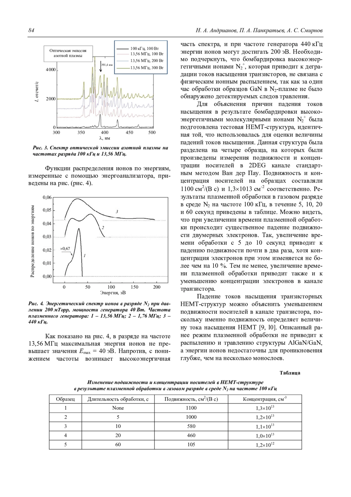 Ключевые фразы: азотная плазма, плазменная обработка, hemt, algangan, rfea