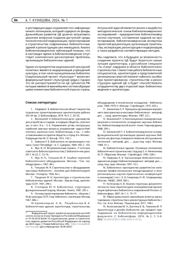 1. Лаврова К. Б. Библиотека как объект творчества социально ориентированных архитекторов рубежа XIX-XX вв. // Библиосфера. 2014. № 3. С. 20-25.