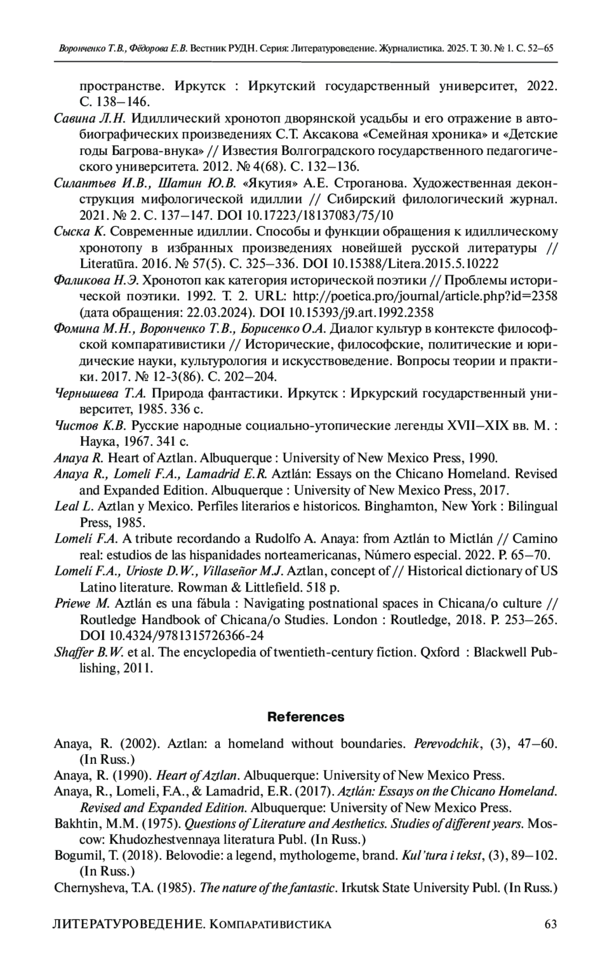 1. Анайя Р. Ацтлан: Отечество без границ / пер. с англ. Т. Воронченко // Переводчик. 2002. № 3. С. 47-60.