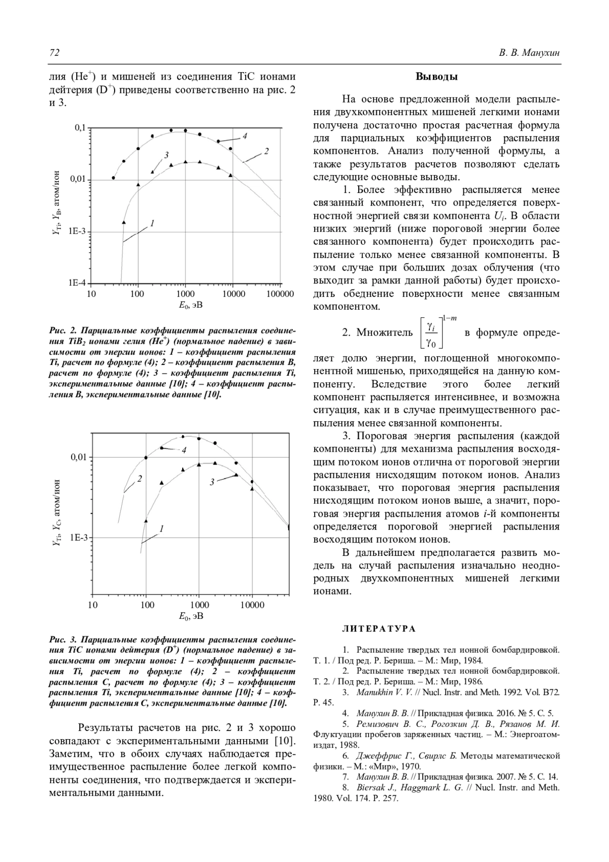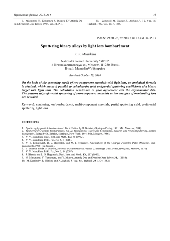 Манухин В. В. Распыление двухкомпонентных однородных мишеней легкими ионами 69