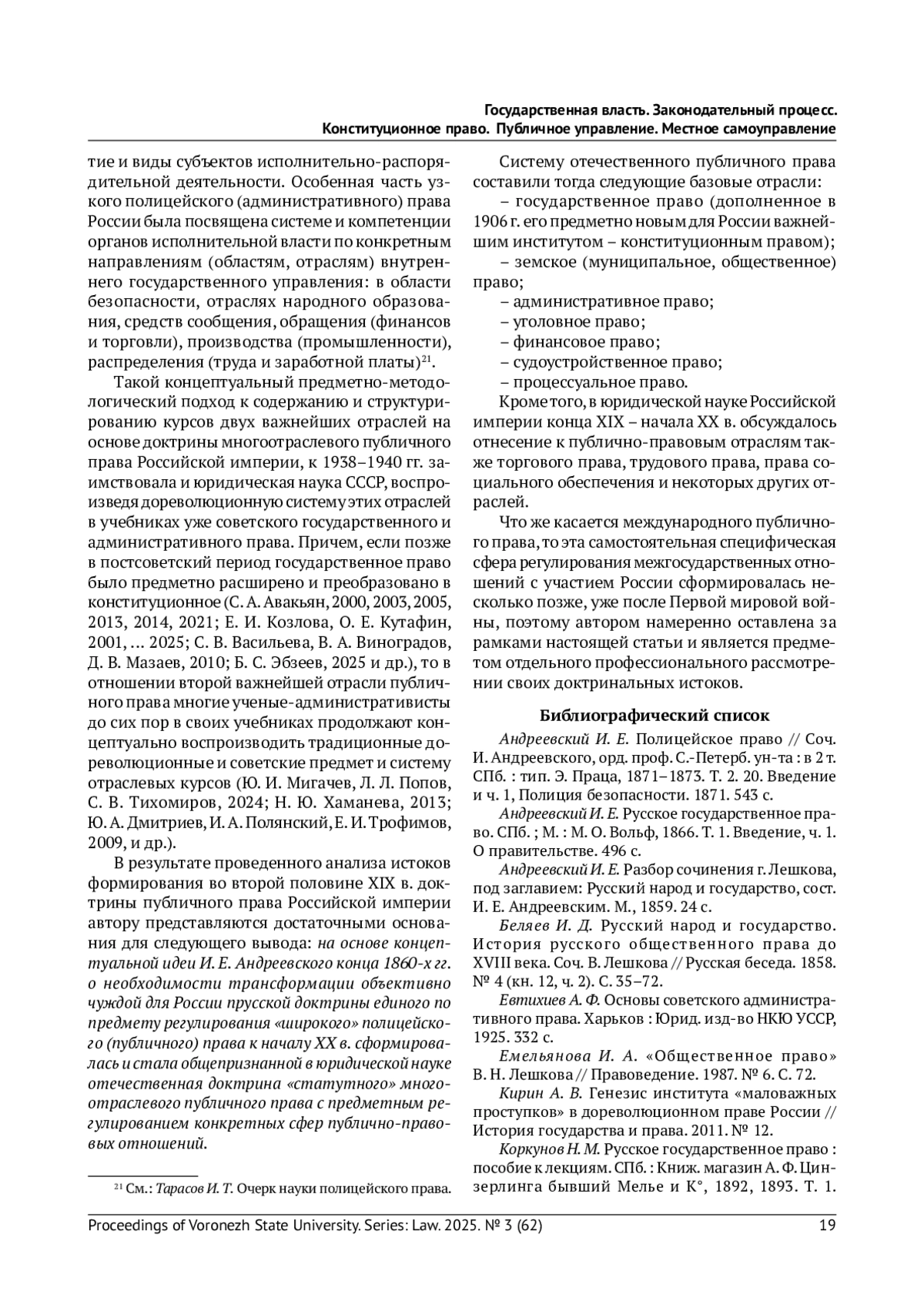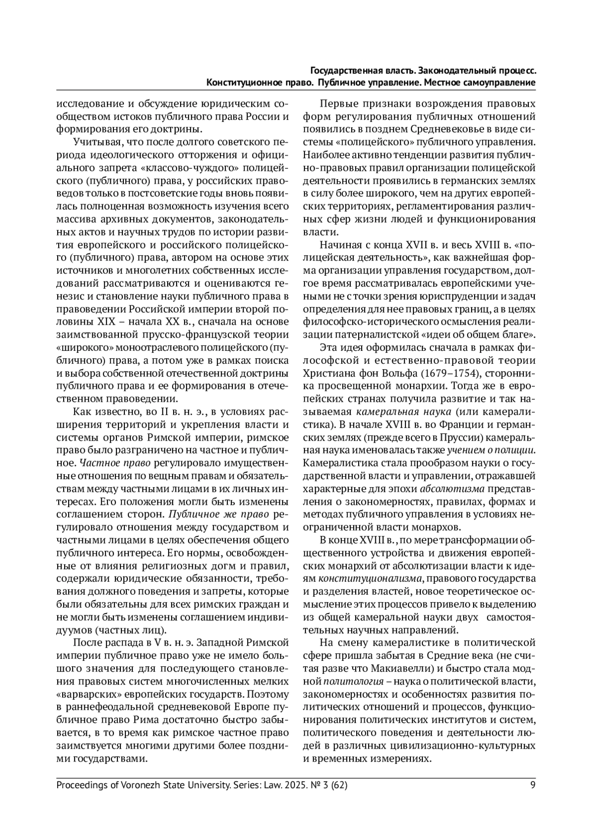 Всилу сложнойинеоднозначнойисториипоявленияи формирования в XIX в. отечественного публичного права его теория и система нуждаются в объективном изучении, осмыслении и оценке своих доктринальных корней и основ