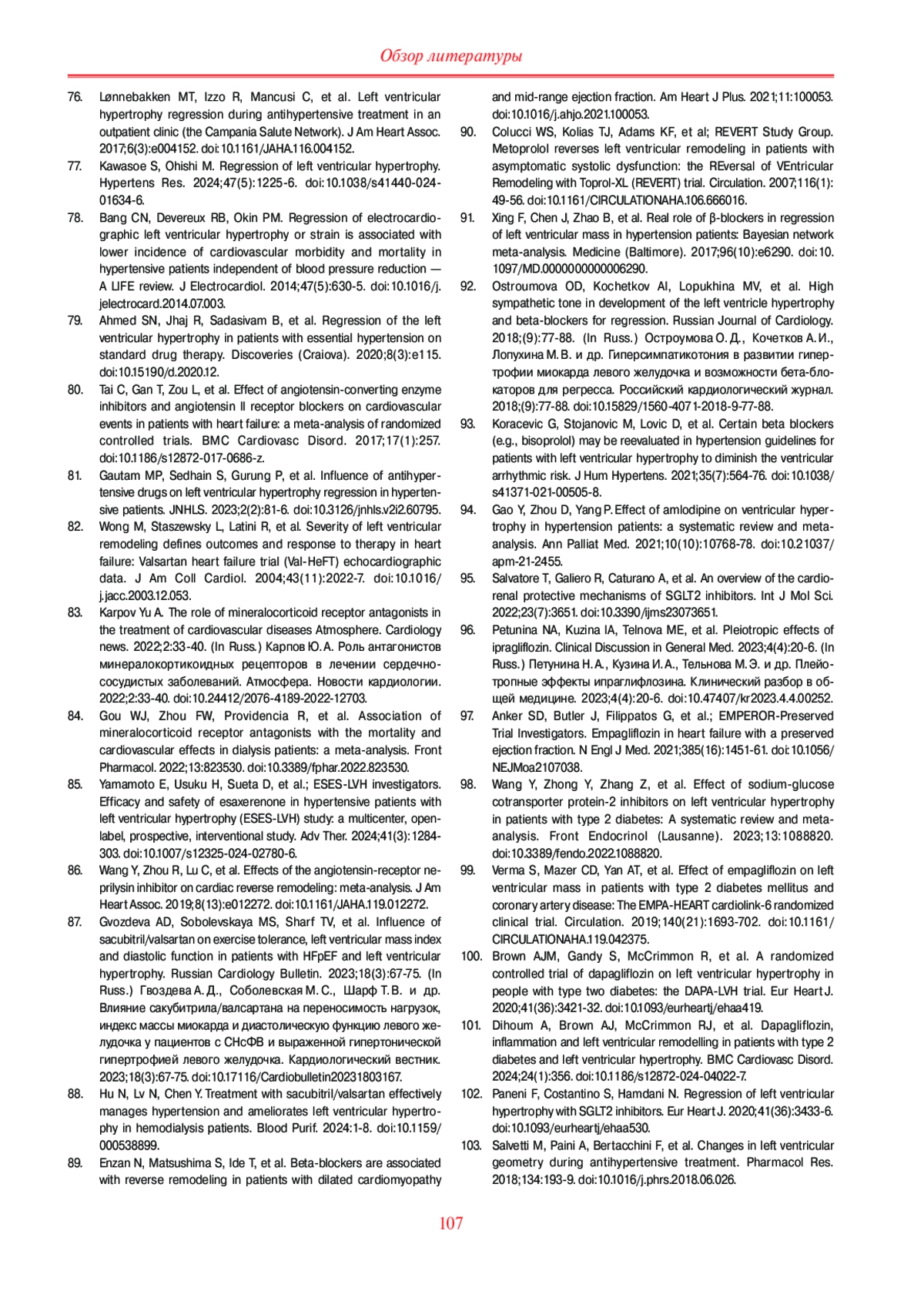 87. Гвоздева А. Д., Соболевская М. С., Шарф Т. В. и др. Влияние сакубитрила/валсартана на переносимость нагрузок, индекс массы миокарда и диастолическую функцию левого желудочка у пациентов с СНсФВ и выраженной гипертонической гипертрофией левого желудочка. Кардиологический вестник. 2023;18(3):67-75. DOI: 10.17116/Cardiobulletin20231803167