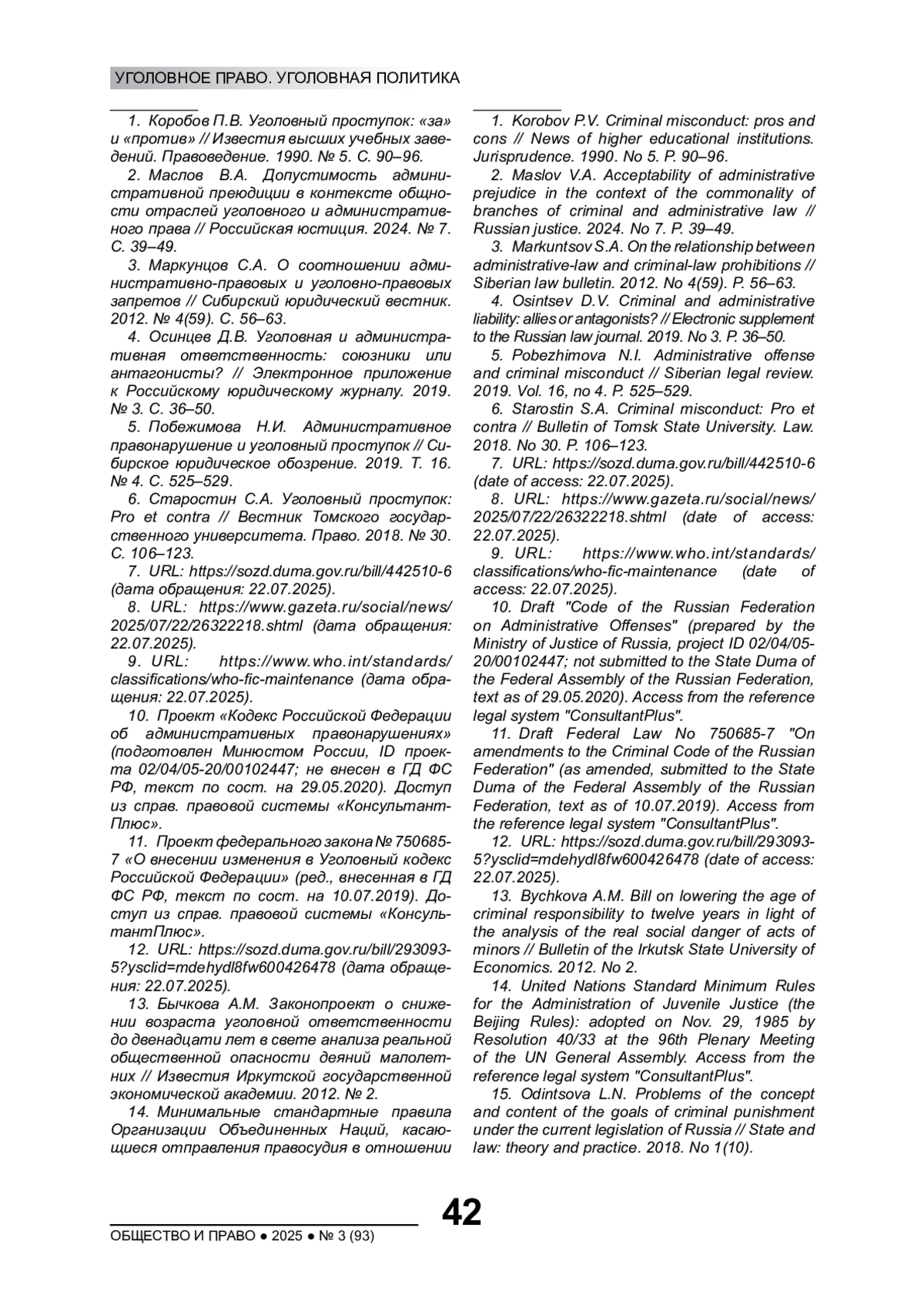 2. Маслов В.А. Допустимость административной преюдиции в контексте общности отраслей уголовного и административного права // Российская юстиция. 2024. № 7. С. 39-49. EDN: FUTKHK