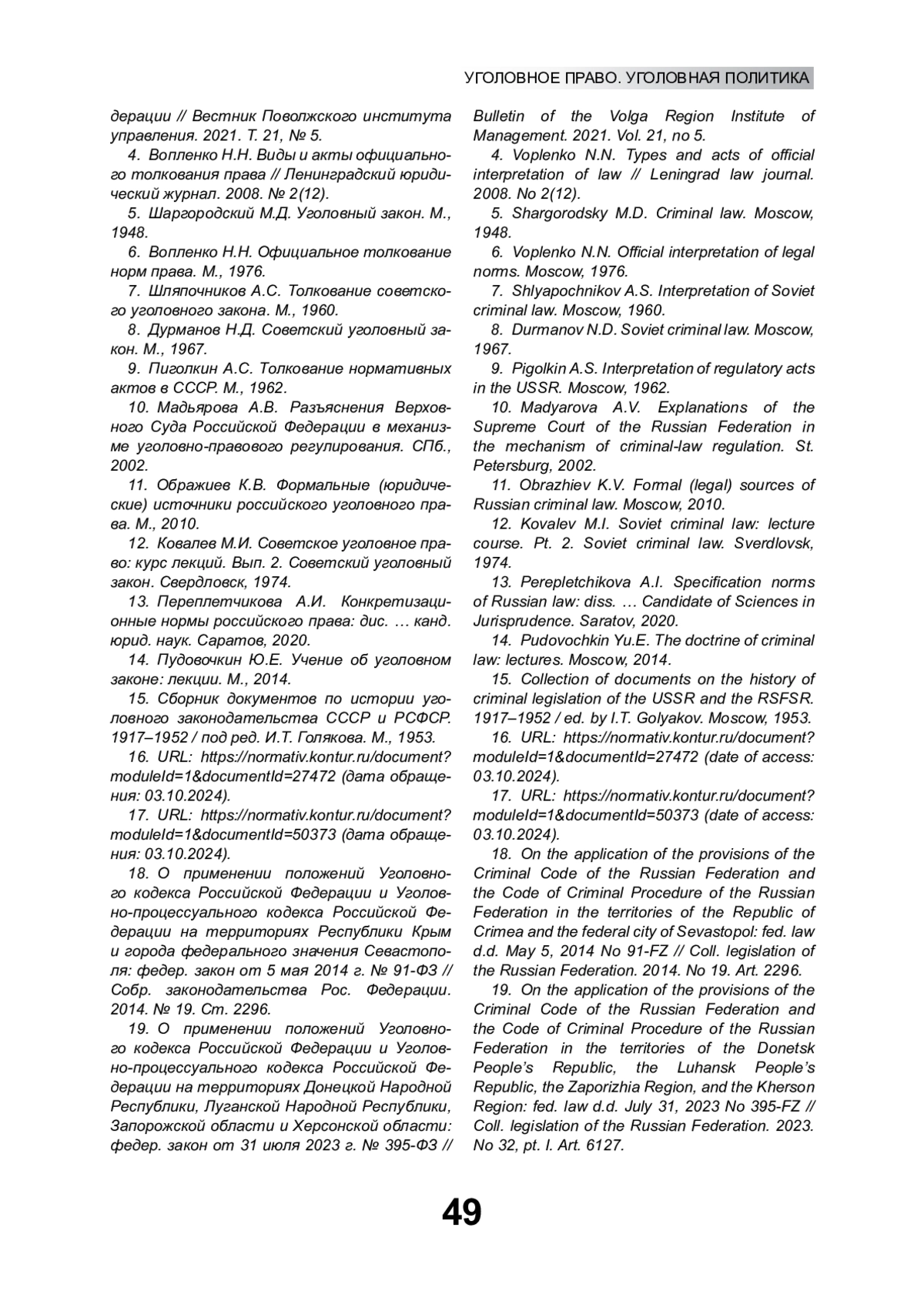 3. Бредихин А.Л., Проценко Е.Д. Официальное толкование права в Российской Федерации // Вестник Поволжского института управления. 2021. Т. 21, № 5. EDN: WCRLGA