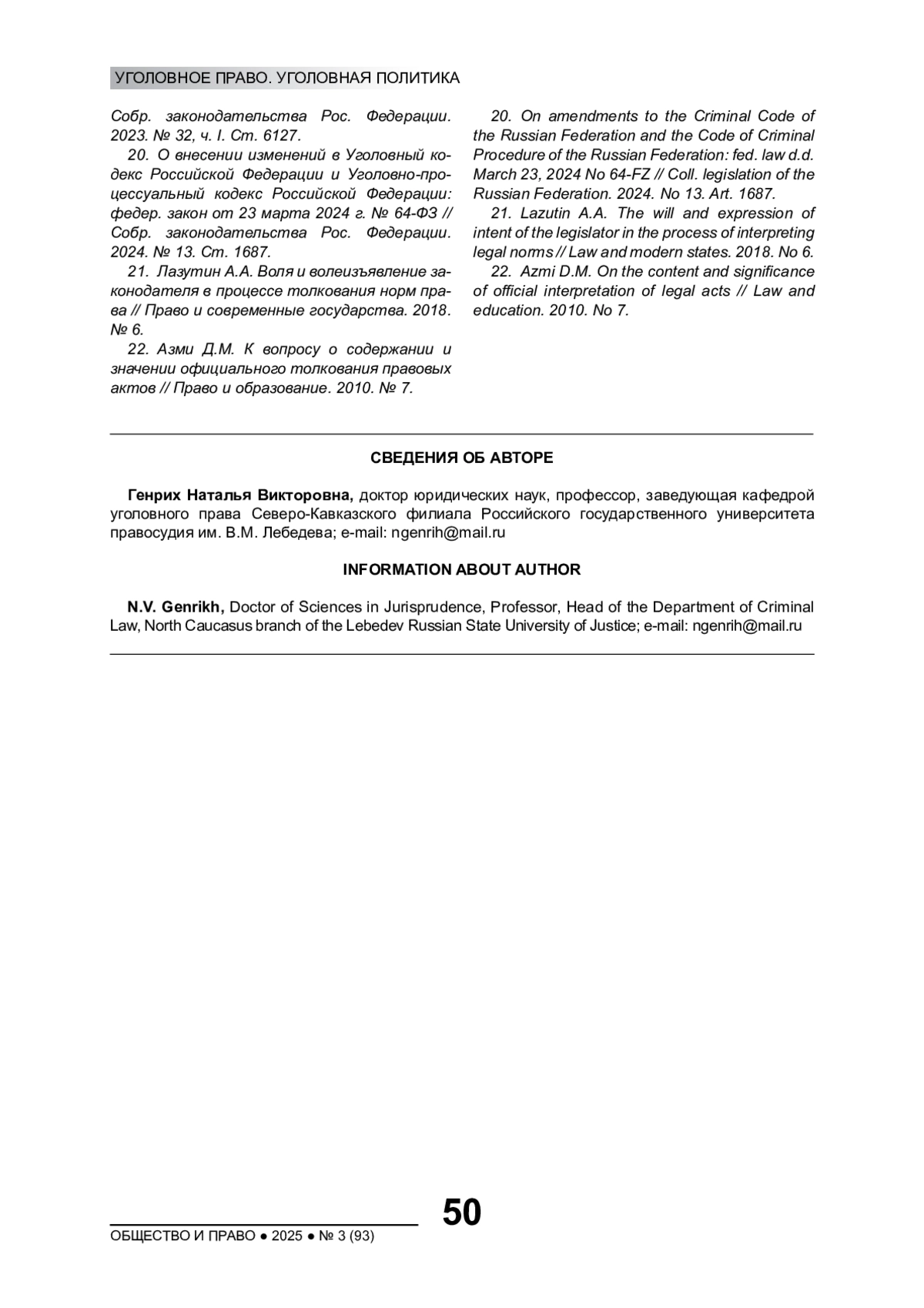 21. Лазутин А.А. Воля и волеизъявление законодателя в процессе толкования норм права // Право и современные государства. 2018. № 6. EDN: RZBNAY