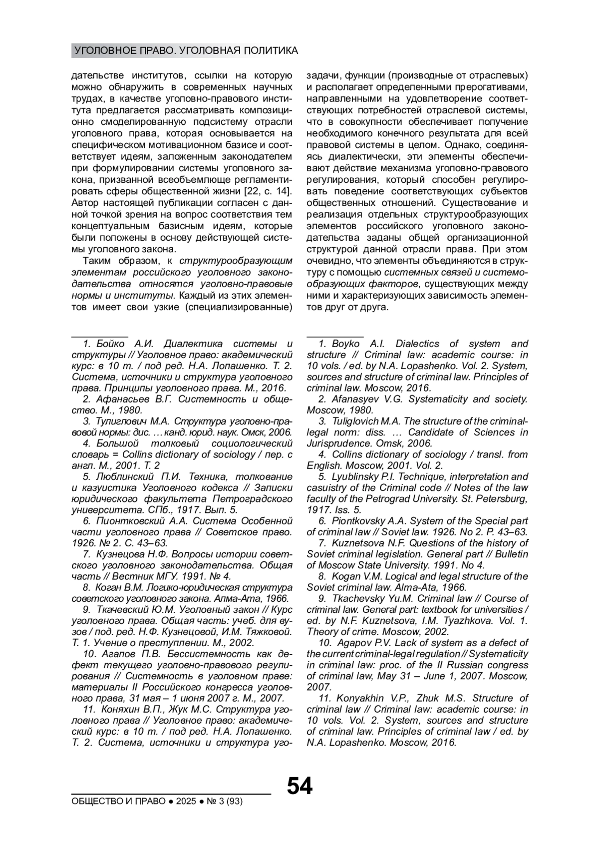 1. Бойко А.И. Диалектика системы и структуры // Уголовное право: академический курс: в 10 т. / под ред. Н.А. Лопашенко. Т. 2. Система, источники и структура уголовного права. Принципы уголовного права. М., 2016.
