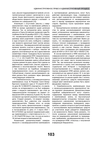 В ранее опубликованной научной статье [1] нами рассмотрены объект и объективная сторона деликта, предусмотренного ч. 1.1 ст. 20.2 КоАП РФ. С учетом раскрытой в ней научно-теоретической и эмпирической базы в настоящей работе будут рассмотрены субъект и субъективная сторона данного административного правонарушения (далее – АПН). Сформулированные выводы и замечания будут способствовать повышению эффективности противодействия вовлечению несовершеннолетних в участие в несанкционированных публичных мероприятиях (далее – НПМ).