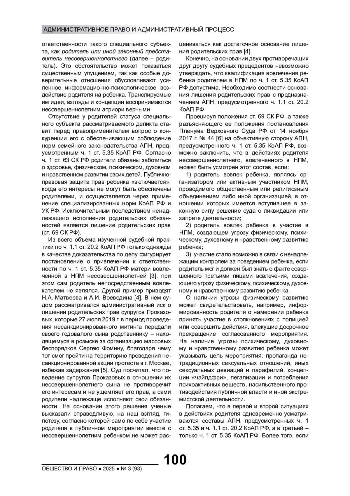 4. Матвеева Н.А., Воеводина А.И. Может ли участие в митинге рассматриваться как основание лишения родительских прав? // Семейное и жилищное право. 2020. № 2. С. 7-10. EDN: VJRTIH