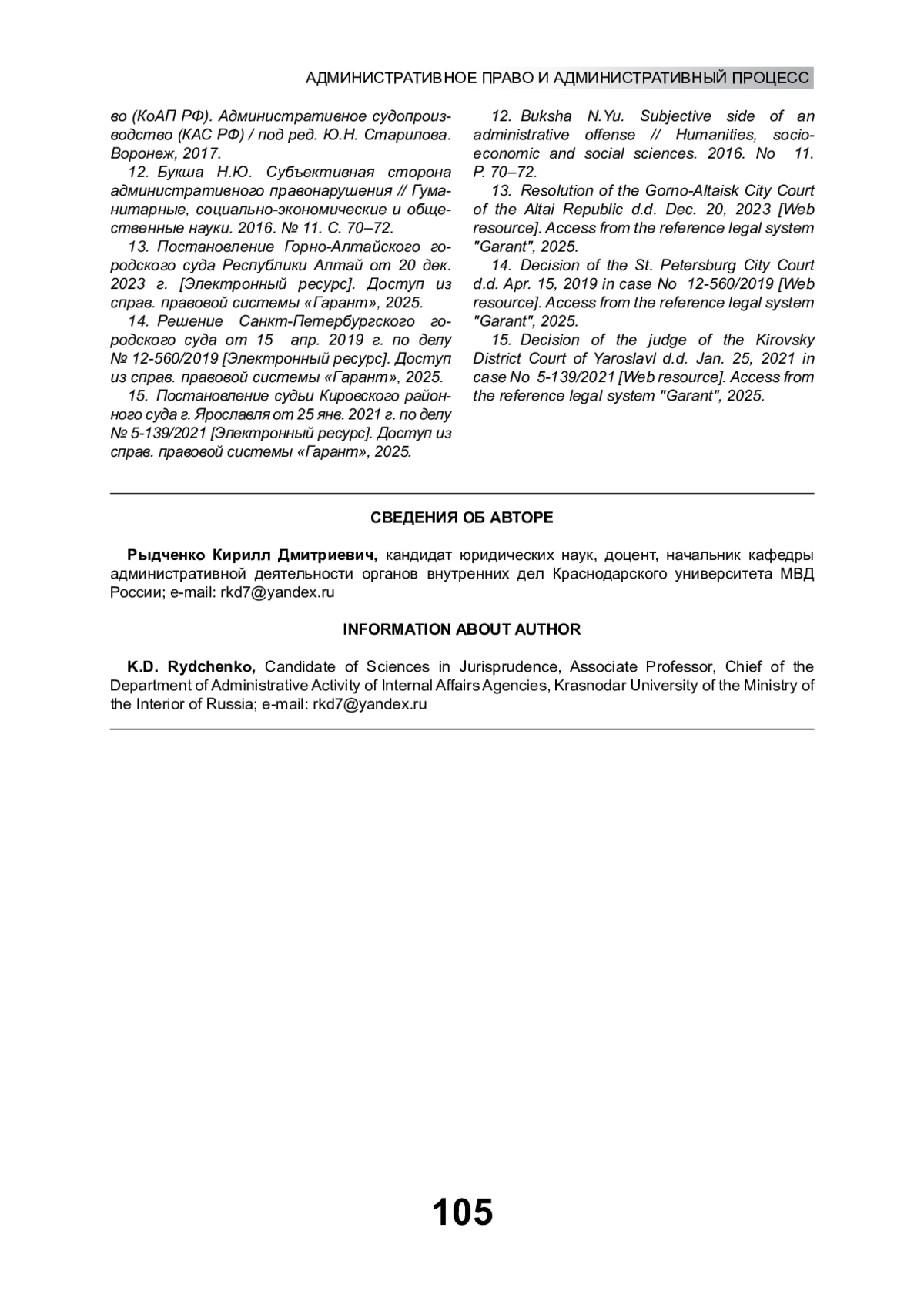 12. Букша Н.Ю. Субъективная сторона административного правонарушения // Гуманитарные, социально-экономические и общественные науки. 2016. № 11. С. 70-72. EDN: XBVPPJ
