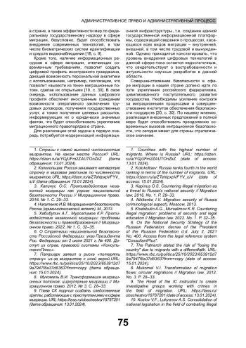 12. Емелин С.М. Миграционная безопасность: внутренние проблемы России // Миграционное право. 2023. № 3. С. 11-13. EDN: UCFMKA