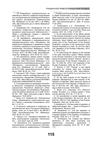 10. Москаленко А.И. Гражданско-правовое регулирование интеллектуальной собственности и процессы цифровизации // Копирайт (Вестник Академии интеллектуальной собственности). 2020. № 4. С. 175-185. EDN: TRFDLF