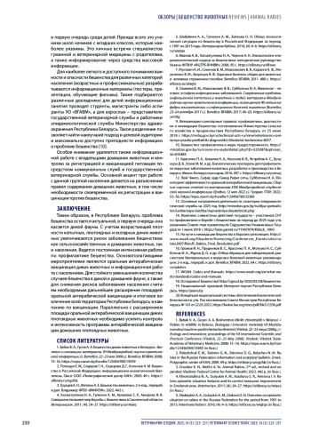 5. Шабейкин А. А., Гулюкин А. М., Зайкова О. Н. Обзор эпизоотической ситуации по бешенству в Российской Федерации за период с 1991 по 2015 годы. Ветеринария Кубани. 2016; (4): 4-6.