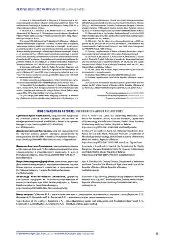 11. Красочко П. А., Ковалев Н. А., Насонов И. В., Ястребов А. С., Бучукури Д. В., Усеня М. М. и др. Биологические препараты для профилактики вирусных заболеваний животных: разработка и производство в Беларуси. Минск: Белорусская наука; 2016. 497 с.