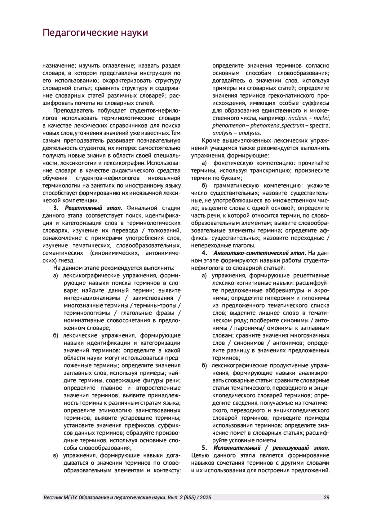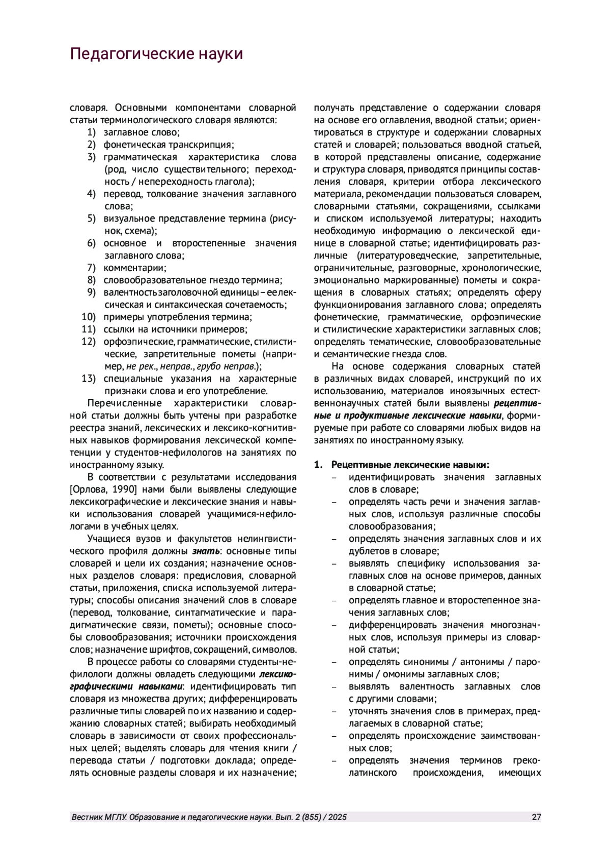 Журнал: ВЕСТНИК МОСКОВСКОГО ГОСУДАРСТВЕННОГО ЛИНГВИСТИЧЕСКОГО УНИВЕРСИТЕТА. ОБРАЗОВАНИЕ И ПЕДАГОГИЧЕСКИЕ НАУКИ