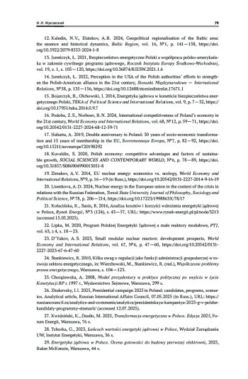 21.Kołacińska, K., Sasin, R. 2016, Analiza kosztów i korzyści wdrożenia energetyki jądrowej w Polsce, Rynek Energii, № 3 (124), s. 43—57, URL: https://www.rynek-energii.pl/pl/node/3213 (дата обращения: 15.05.2025).