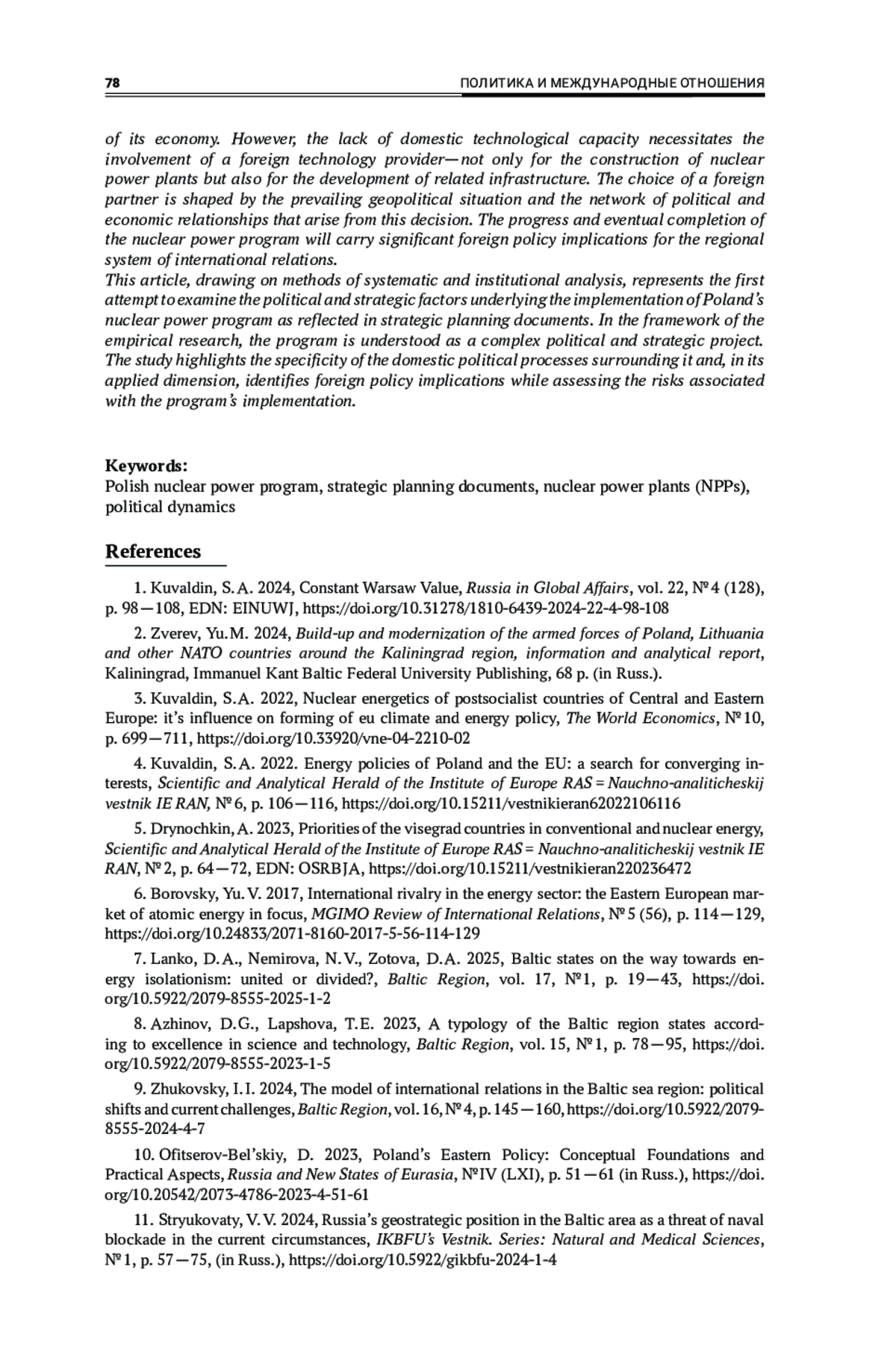 9.Кувалдин, С. А. 2020, Экономика Польши 2023, Приоритеты вишеградских стран в углеводородной и атомной энергетике, Научно-аналитический вестник Института Европы РАН, № 2, с. 64—72, EDN: OSRBJA, https://doi.org/10.15211/vestnikieran220236472