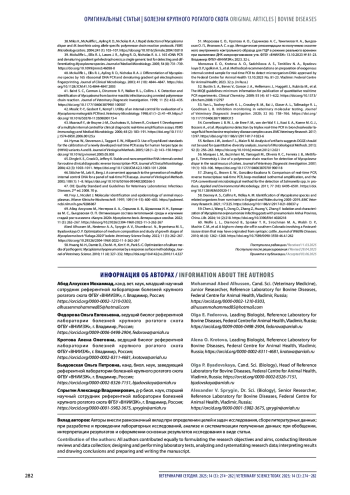 3. Абед Алхуссен М., Кирпиченко В. В., Яцентюк С. П., Нестеров А. А., Бьядовская О. П., Жбанова Т. В., Спрыгин А. В. Патогенные микоплазмы крупного рогатого скота Mycoplasma bovis, M. bovigenitalium и M. dispar, краткая характеристика возбудителей (обзор). Сельскохозяйственная биология. 2021; 56 (2): 245-260. DOI: 10.15389/agrobiology.2021.2.245rus