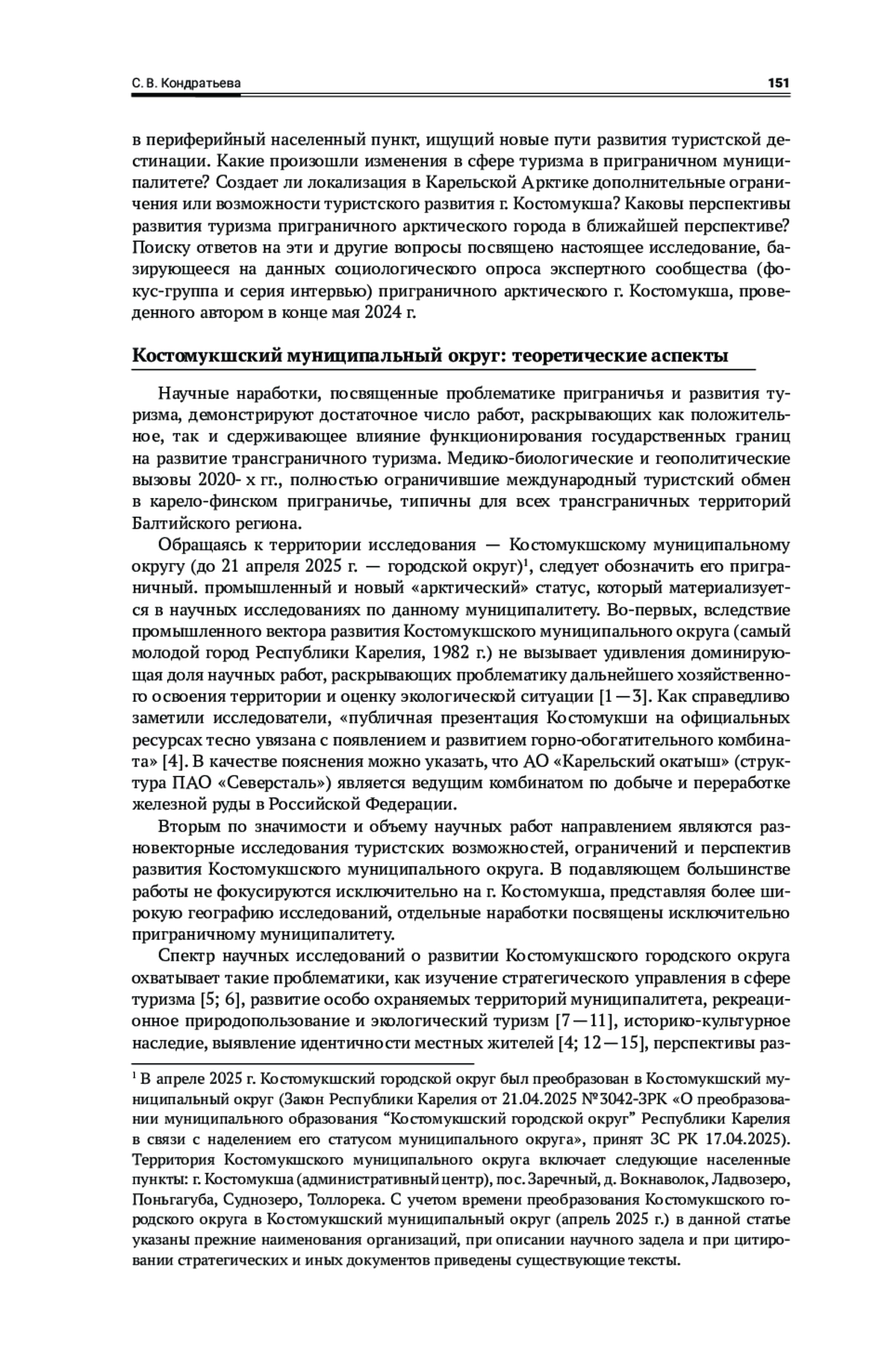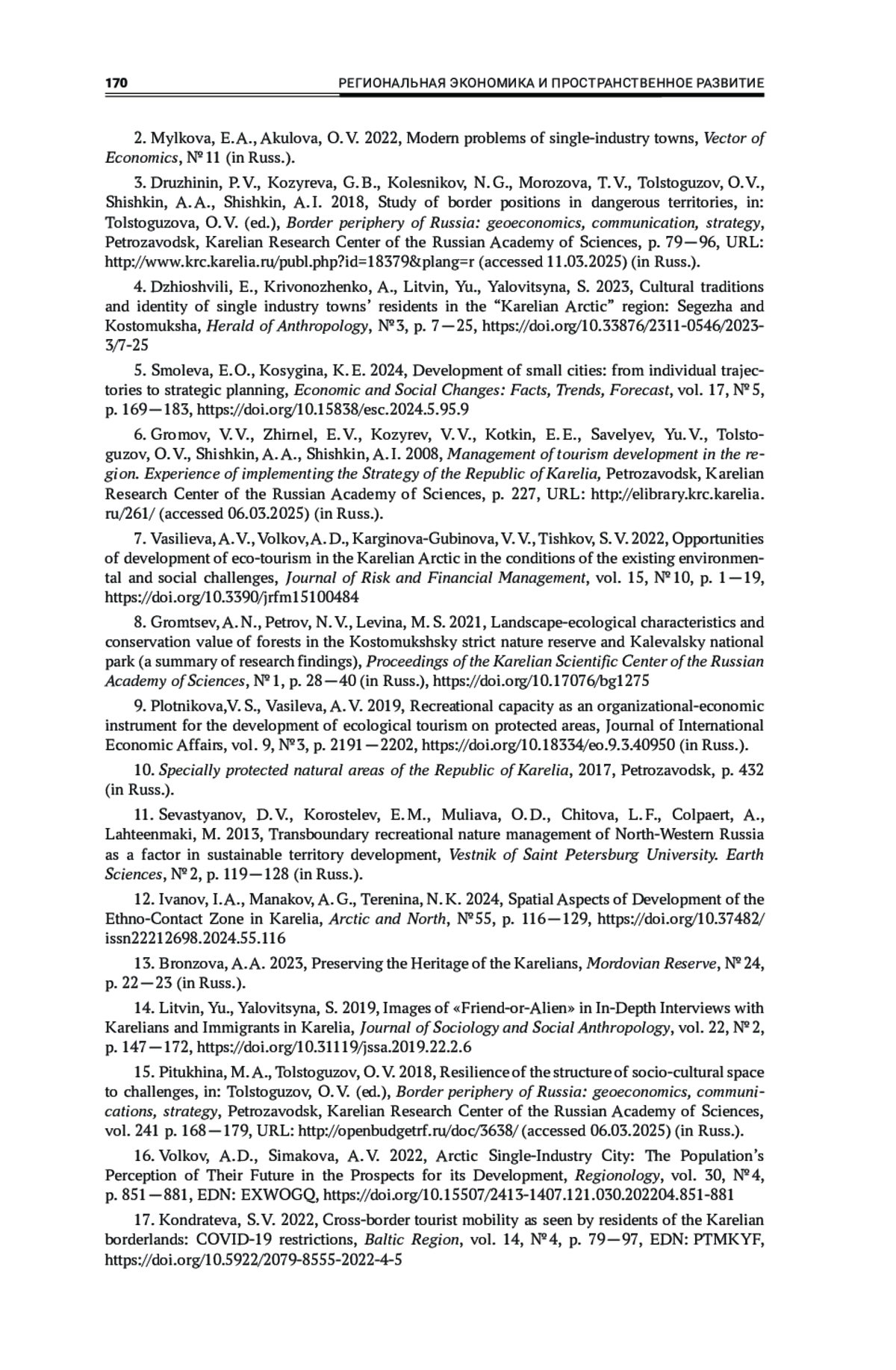 12. Иванов, И. А., Манаков, А. Г., Теренина, Н. К. 2024, Пространственные аспекты развития этноконтактной зоны в Карелии, Арктика и Север, No 55, с. 116—129, EDN: CAGDEP,https://doi.org/10.37482/issn22212698.2024.55.116