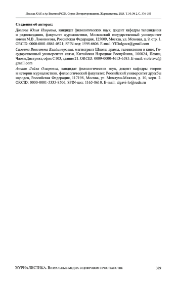 Журнал: ВЕСТНИК РОССИЙСКОГО УНИВЕРСИТЕТА ДРУЖБЫ НАРОДОВ. СЕРИЯ: ЛИТЕРАТУРОВЕДЕНИЕ. ЖУРНАЛИСТИКА