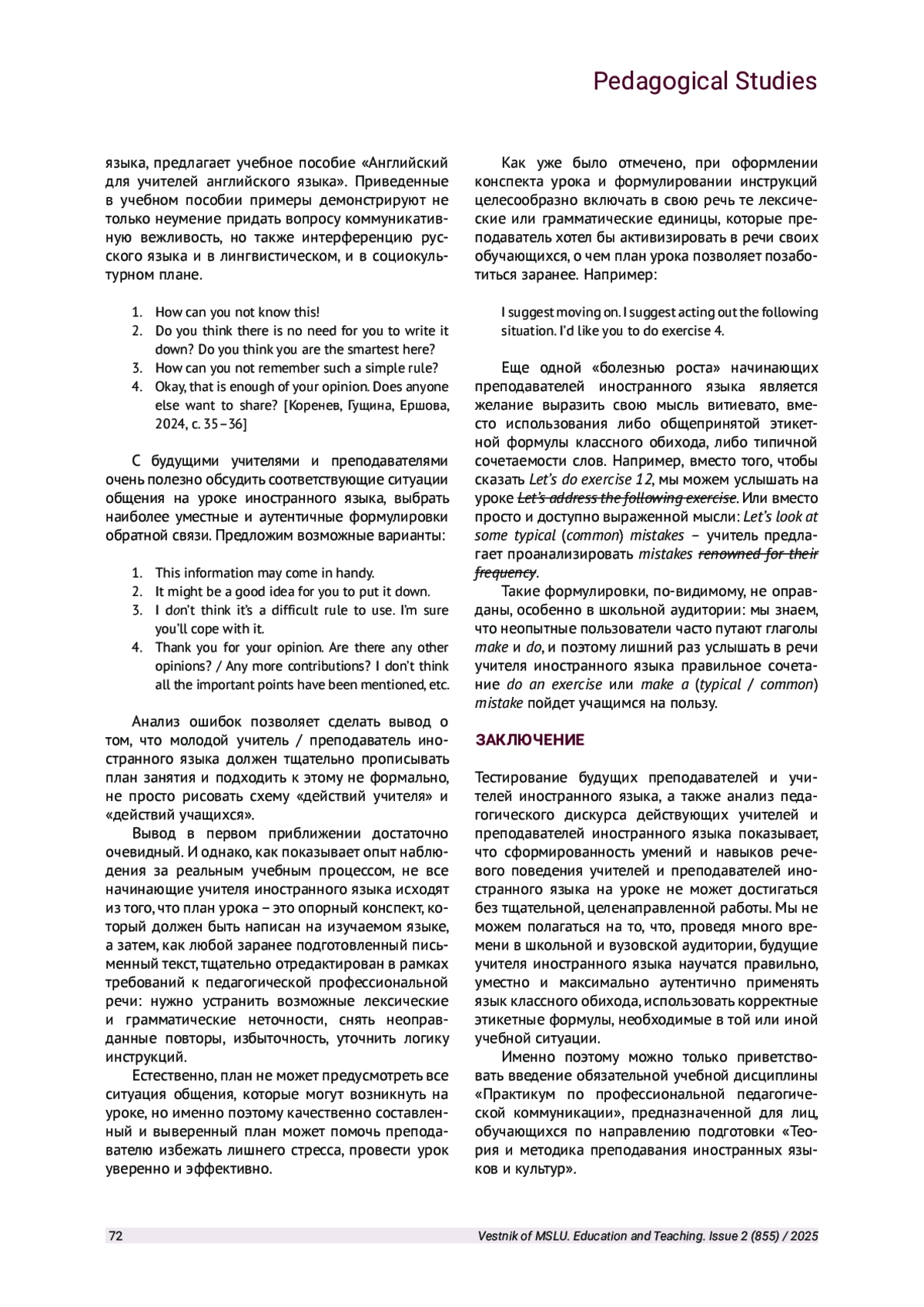 4. Коренев А. А., Гущина Ю. А., Ершова Т. А. Английский для учителей английского языка (English for Teachers of English, Students’ Book: учебник для вузов с электронной поддержкой. М.: RELOD, 2024.