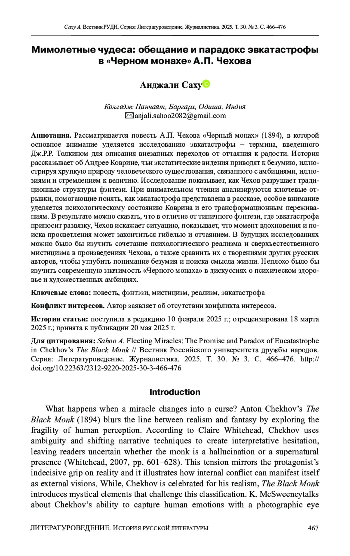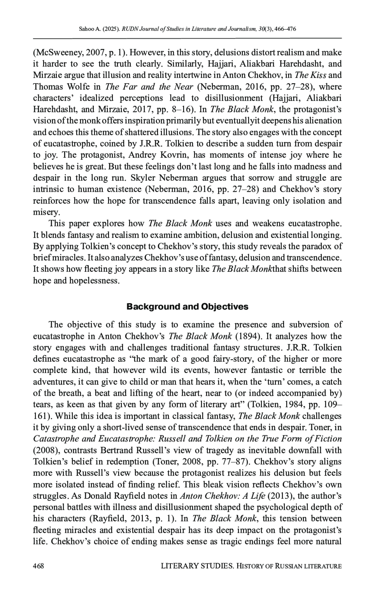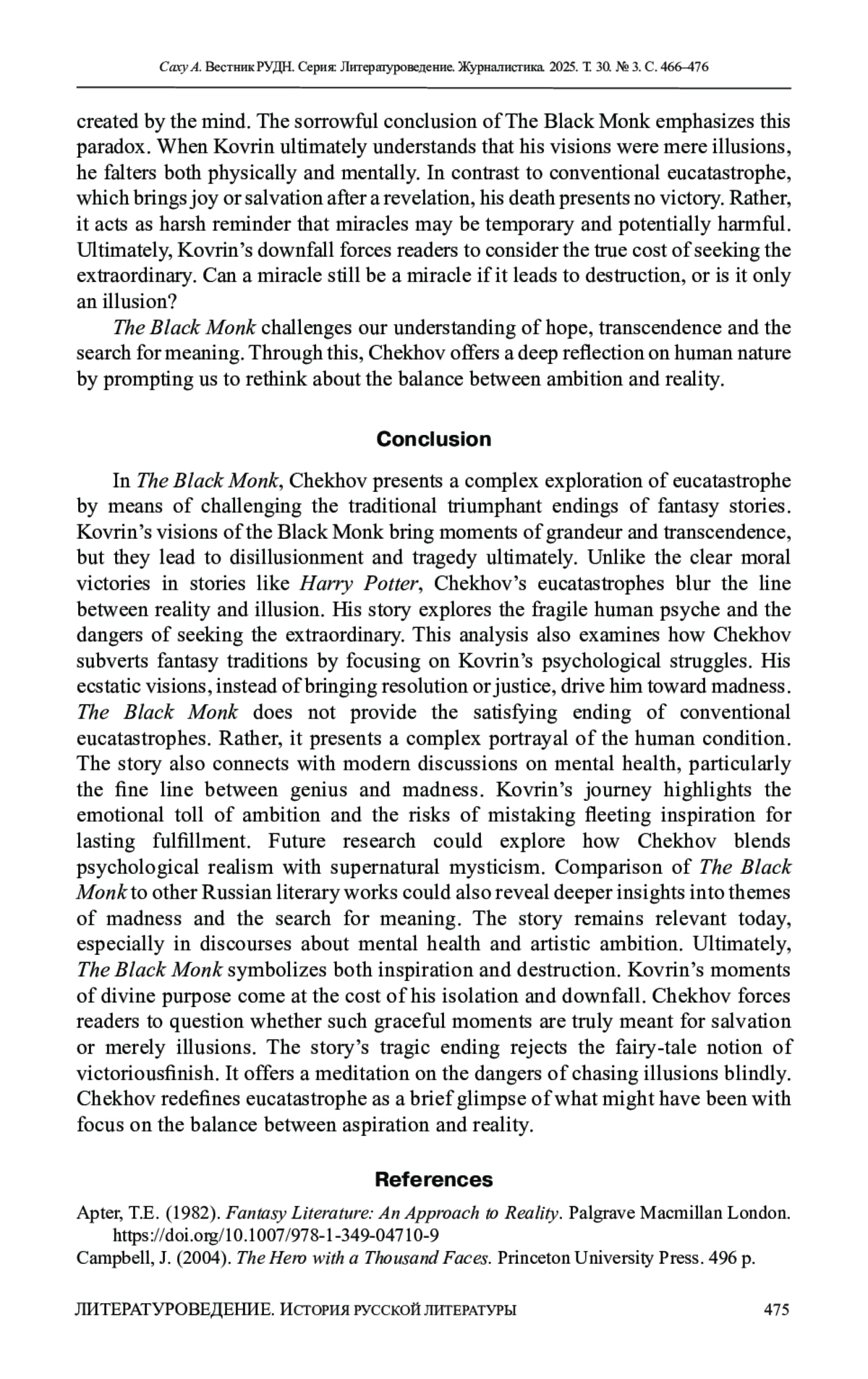 24. Whitehead, Cl. (2007). Anton Chekhov’s The Black Monk: An Example of the Fantastic? Slavonic and East European Review, 85(4), 601-628. DOI: 10.1353/see.2007.0006