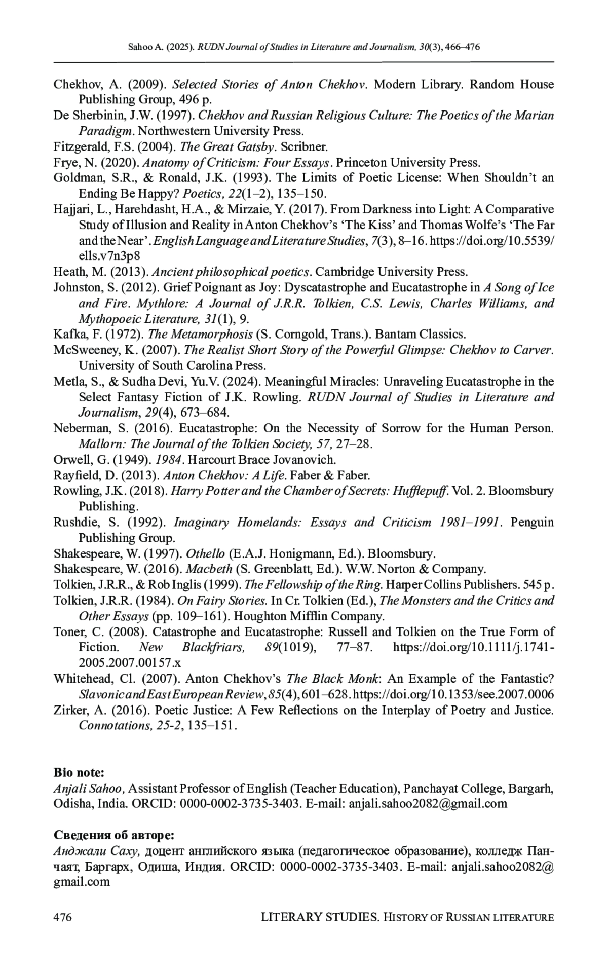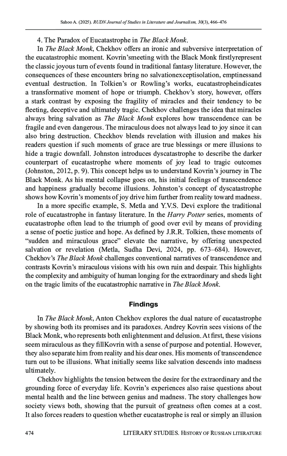 13. Metla, S., & Sudha Devi, Yu.V. (2024). Meaningful Miracles: Unraveling Eucatastrophe in the Select Fantasy Fiction of J.K. Rowling. RUDN Journal of Studies in Literature and Journalism, 29(4), 673-684.