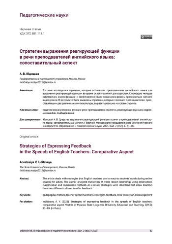 В статье исследуются стратегии, которые используют преподаватели английского языка для выражения реагирующей функции во время онлайн-занятий для взрослых. С помощью методов наблюдения, классификации и сопоставления были проанализированы транскрипции записей видеоуроков. В результате были выявлены стратегии, которые помогают преподавателям, представляющим две различные лингвокультуры, выразить реакцию на слова студента.