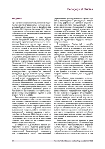 При изучении иностранного языка многие студенты сталкиваются с тревожностью и страхом совершить ошибку в ситуациях общения [Дальбергенова, Ахме това, 2019; Сергеева, Чаплыгина, 2019]. Задача преподавателя – облегчить эти чувства с помощью доброжелательной и великодушной реакции на высказывание студента.