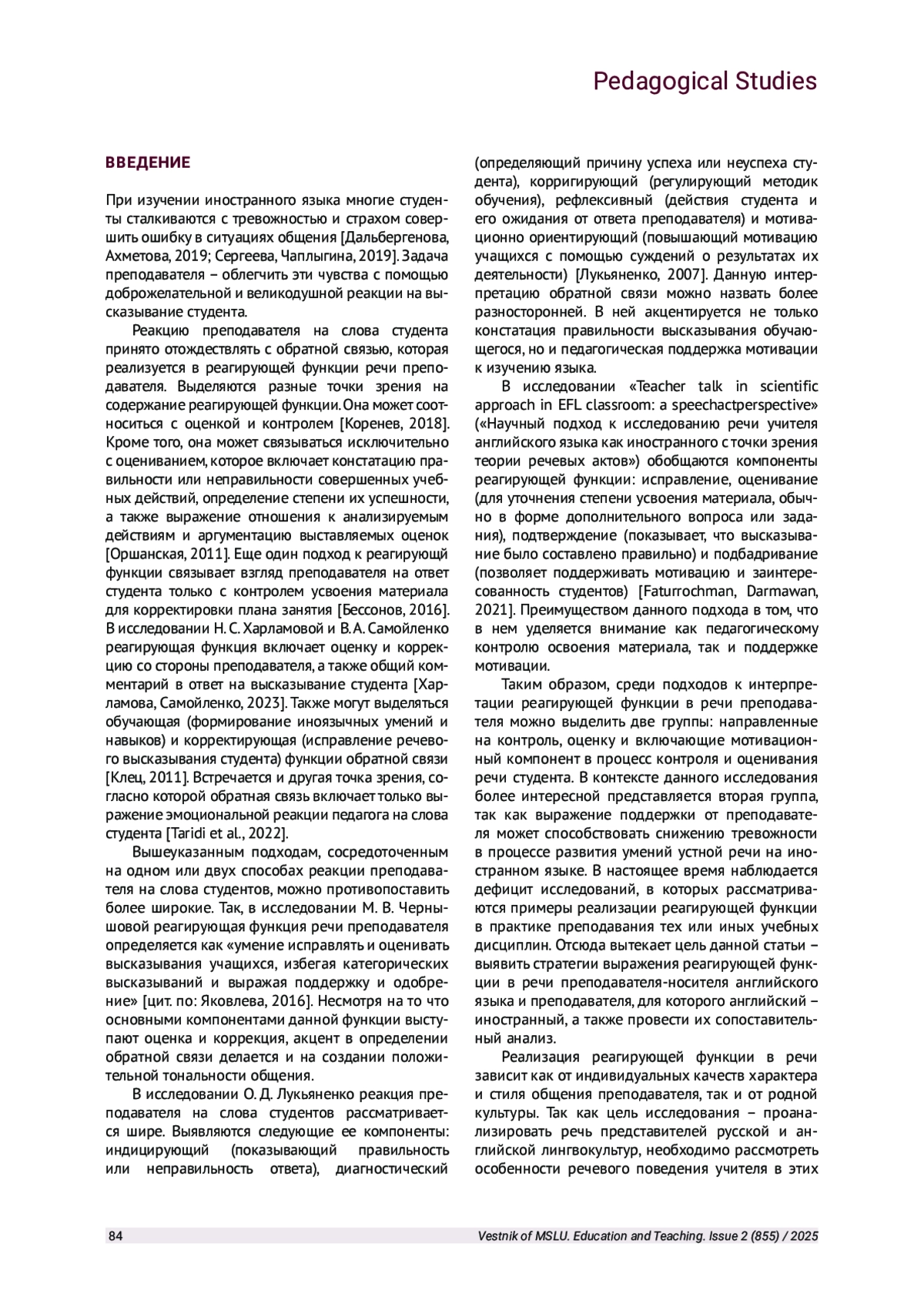 11. Faturrochman R. G., Darmawan A. A., Hadi F. Teacher talk in scientific approach in EFL classroom: a speech acts perspective // SAGA: Journal of English Language Teaching and Applied Linguistics.2021. Vol. 2. № 1. P. 35-46. EDN: CZKUTV