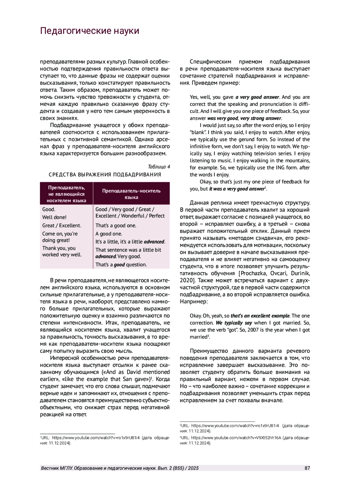 4. Оршанская Е. Г. Модели речевого поведения учителя иностранного языка // Сибирский педагогический журнал. 2011. № 1. С. 127-134. EDN: PDTSNV