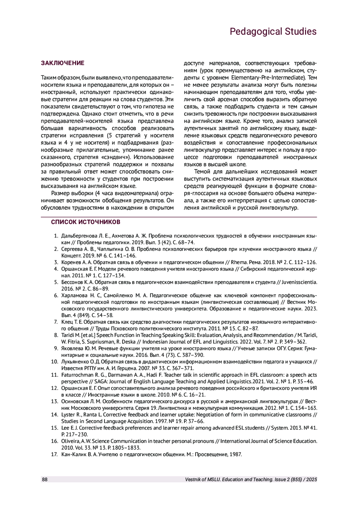 12. Оршанская Е. Г. Опыт сопоставительного анализа речевого поведения российского и британского учителя ИЯ в классе // Иностранные языки в школе. 2010. № 6. С. 16-21. EDN: MSNVYV